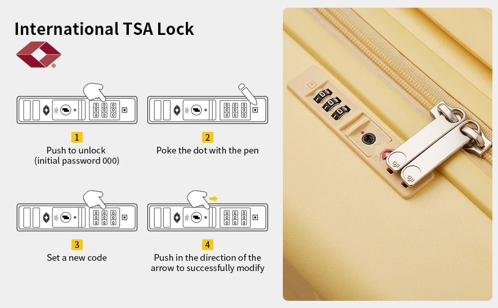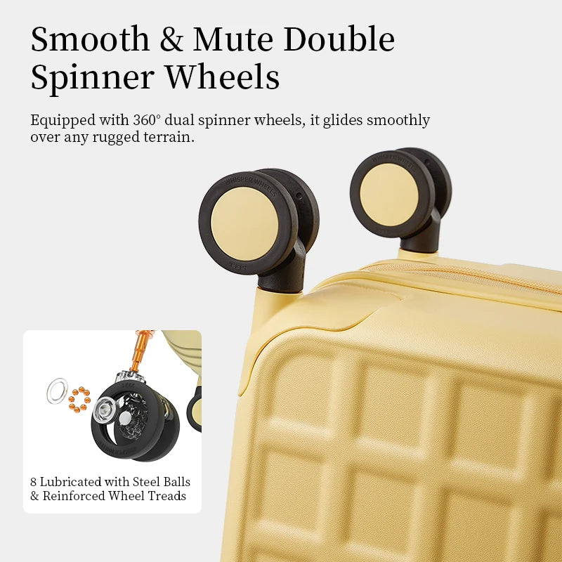 The Voyan Soleil Suitcase brings a touch of light and joy to the art of travel. Designed in refined pastel hues and crafted from lightweight polycarbonate, it balances durability with effortless elegance. The subtle grid texture adds a contemporary architectural detail, while the TSA-approved lock and 360° spinner wheels ensure seamless movement across every journey.