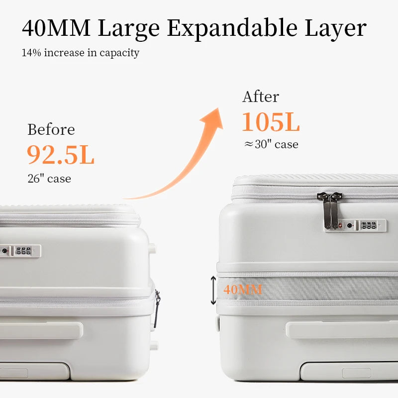 The Voyan Atelier Trolley represents the future of refined mobility — where design intelligence meets modern travel. Crafted from high-grade polycarbonate, it features a front-opening lid with a deep 1:9 structure for effortless packing and access. The 40mm expandable frame adds flexible capacity, while the vibration-proof laptop compartment and wet-dry divider ensure organized precision on every journey.